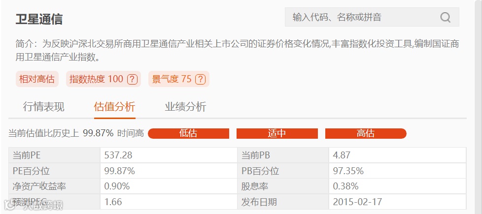 国证卫星通信指数市盈率数据