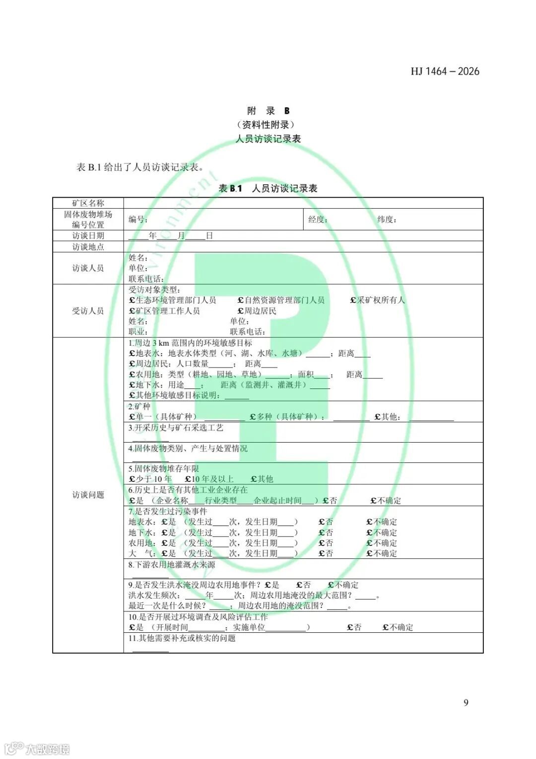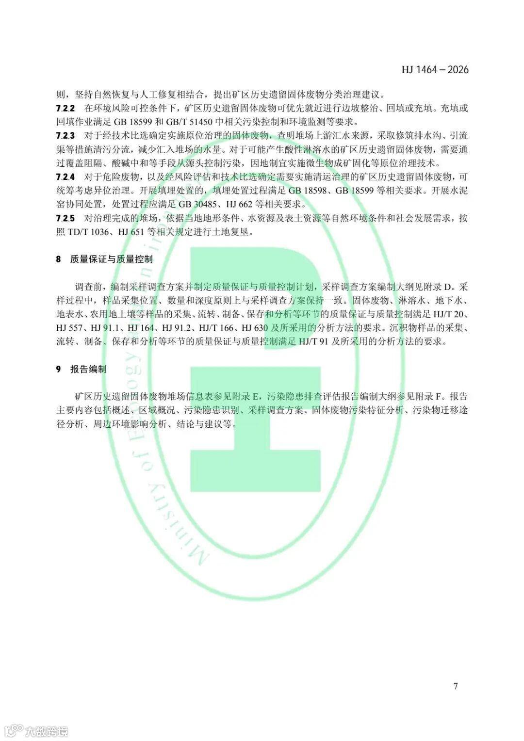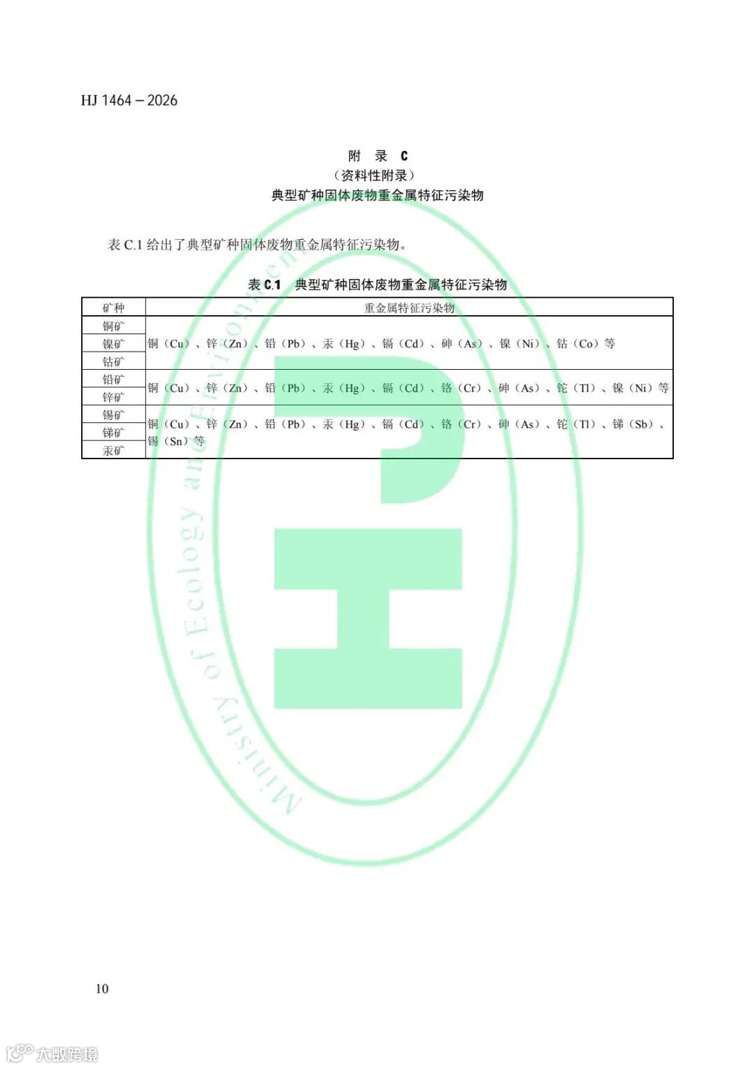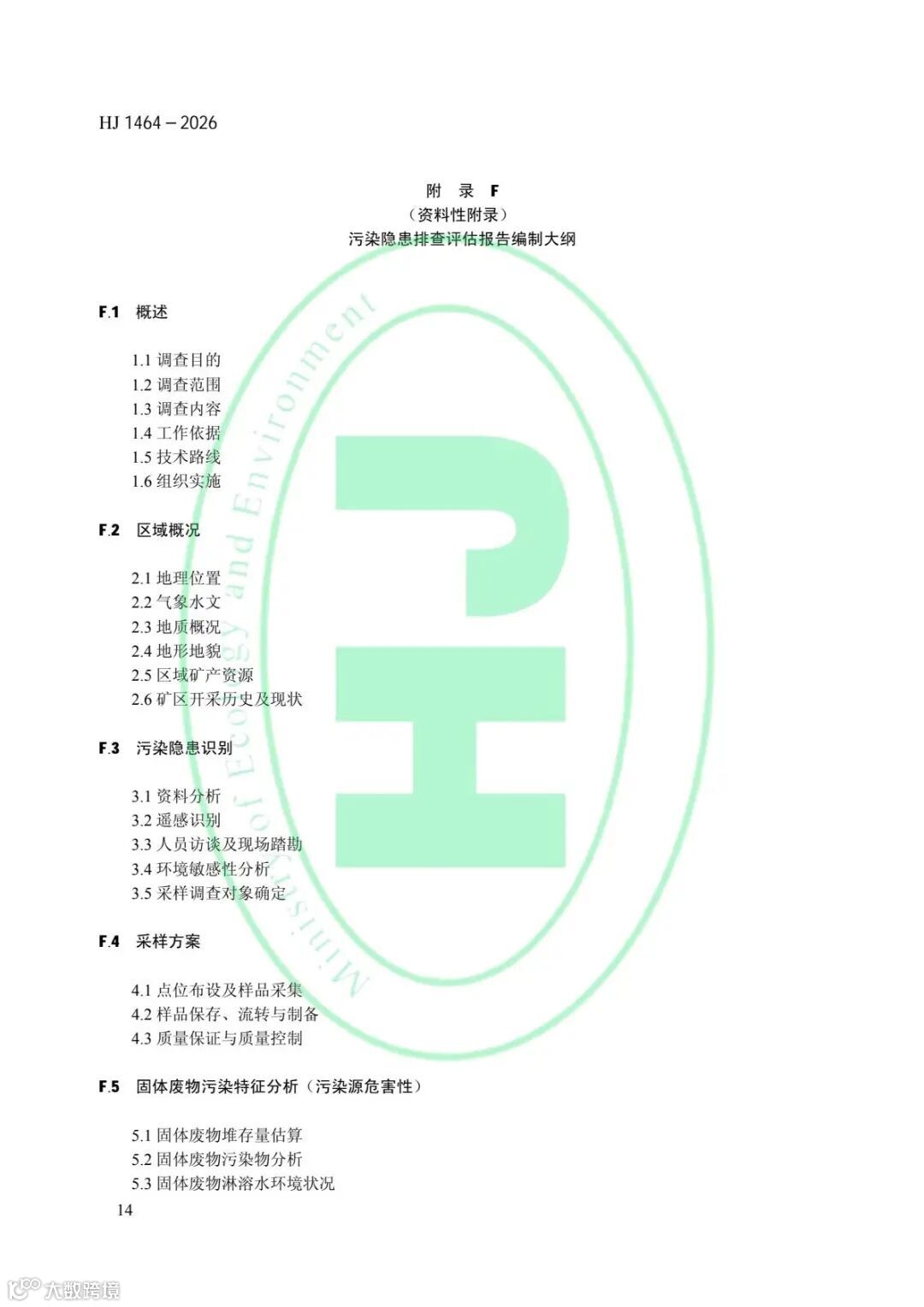 四、《矿区历史遗留固体废物污染隐患排查评估技术规范(试行)》(HJ 1464-2026)
