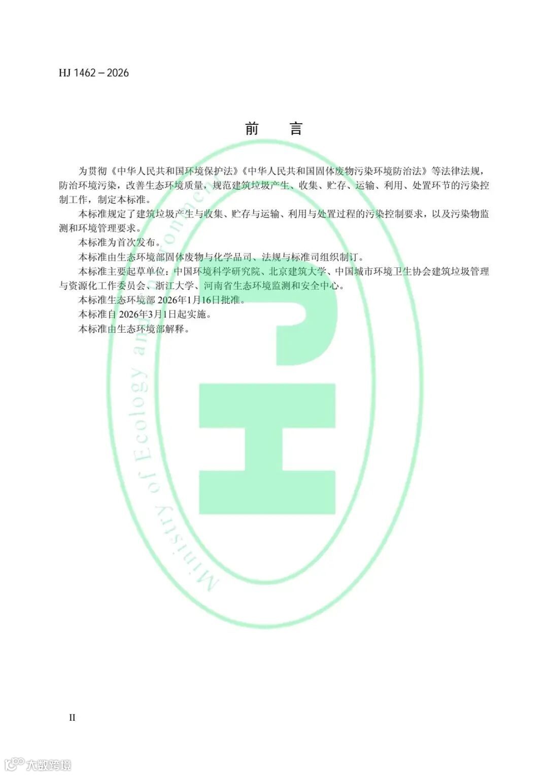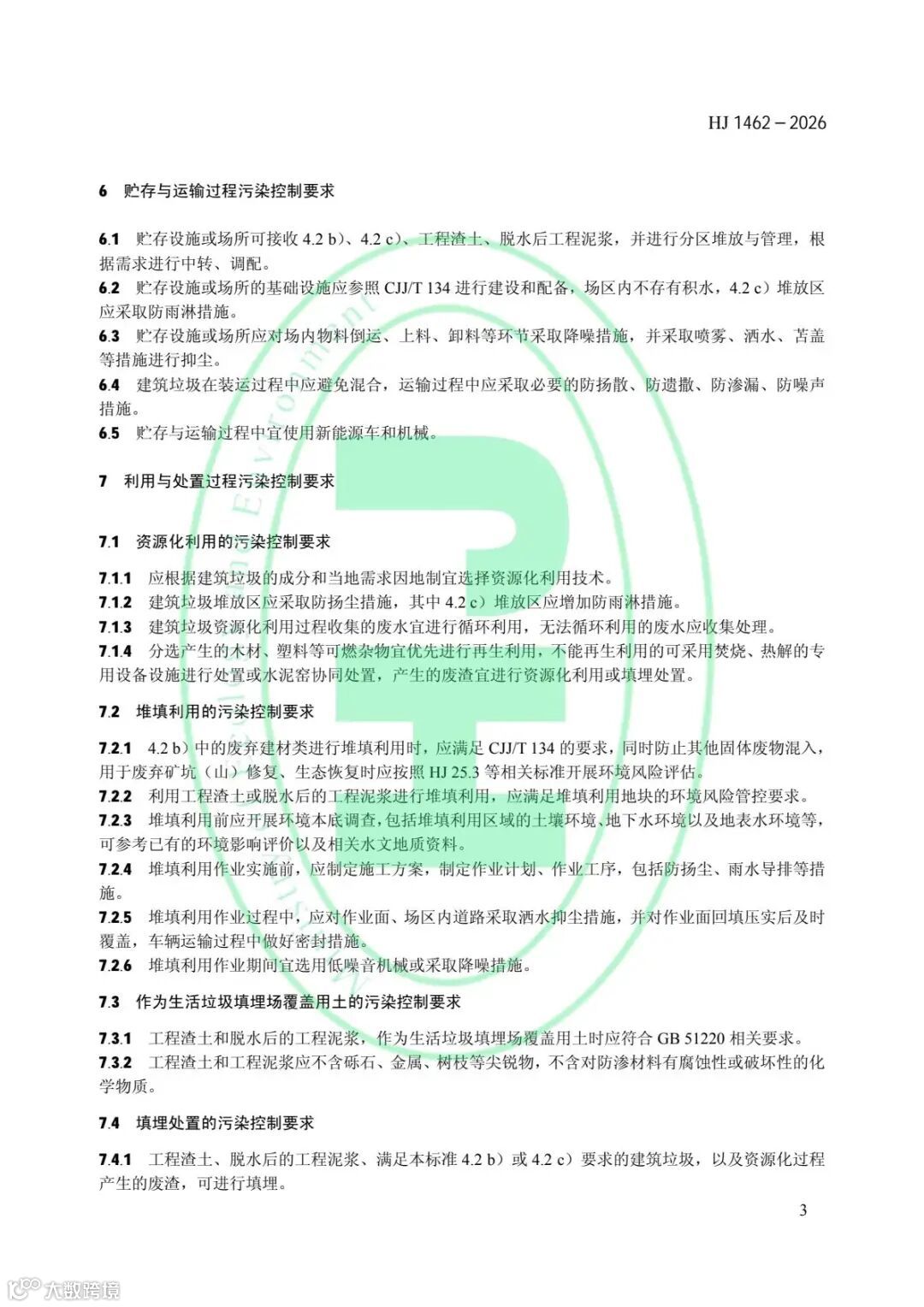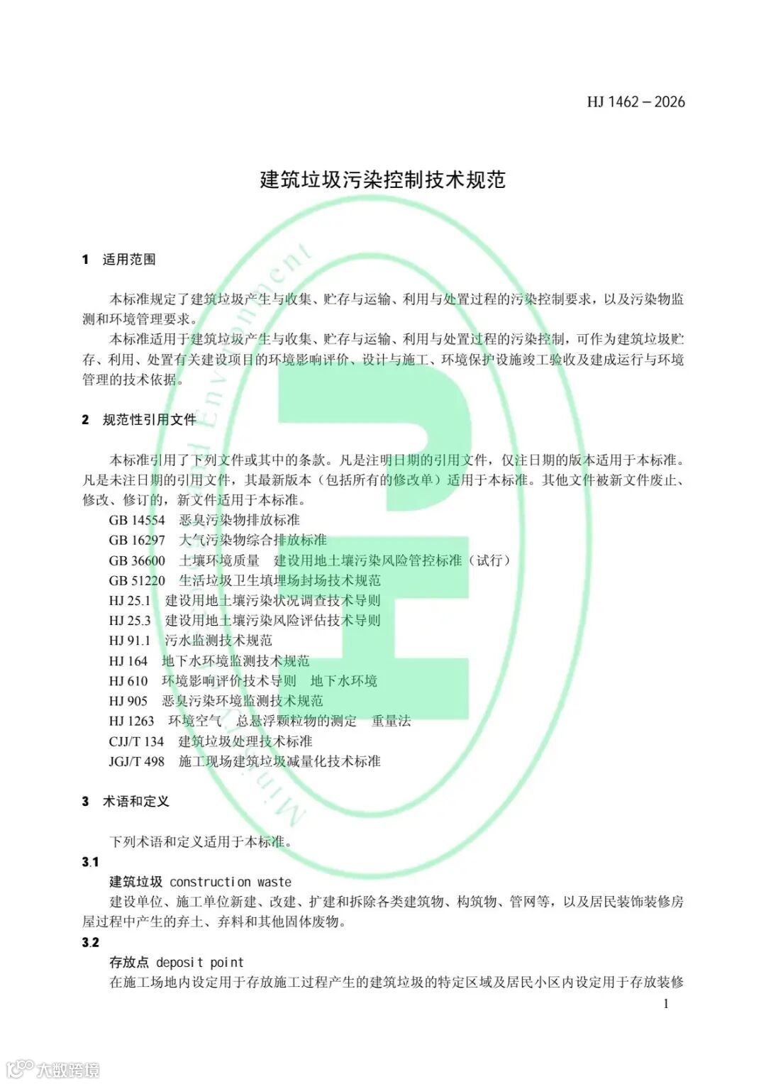 一、《建筑垃圾污染控制技术规范》(HJ 1462-2026)