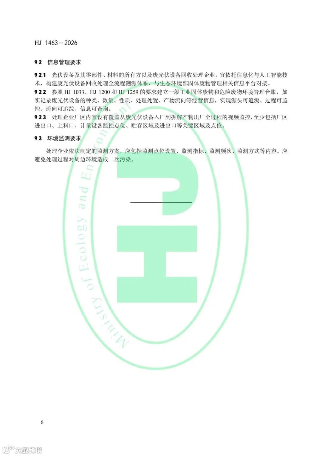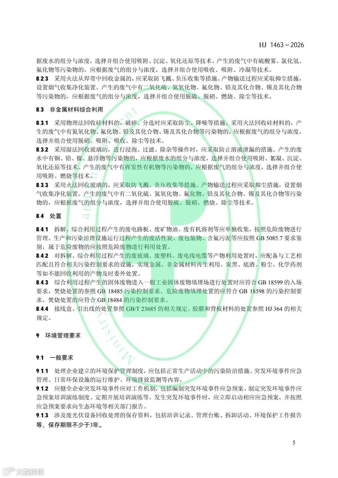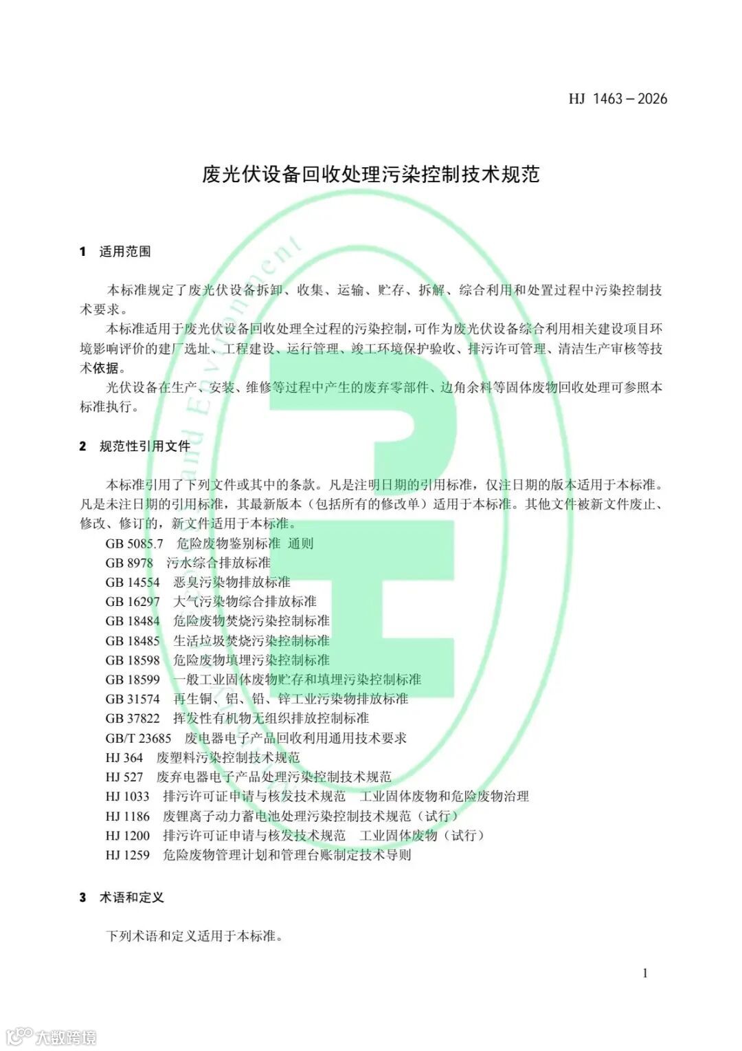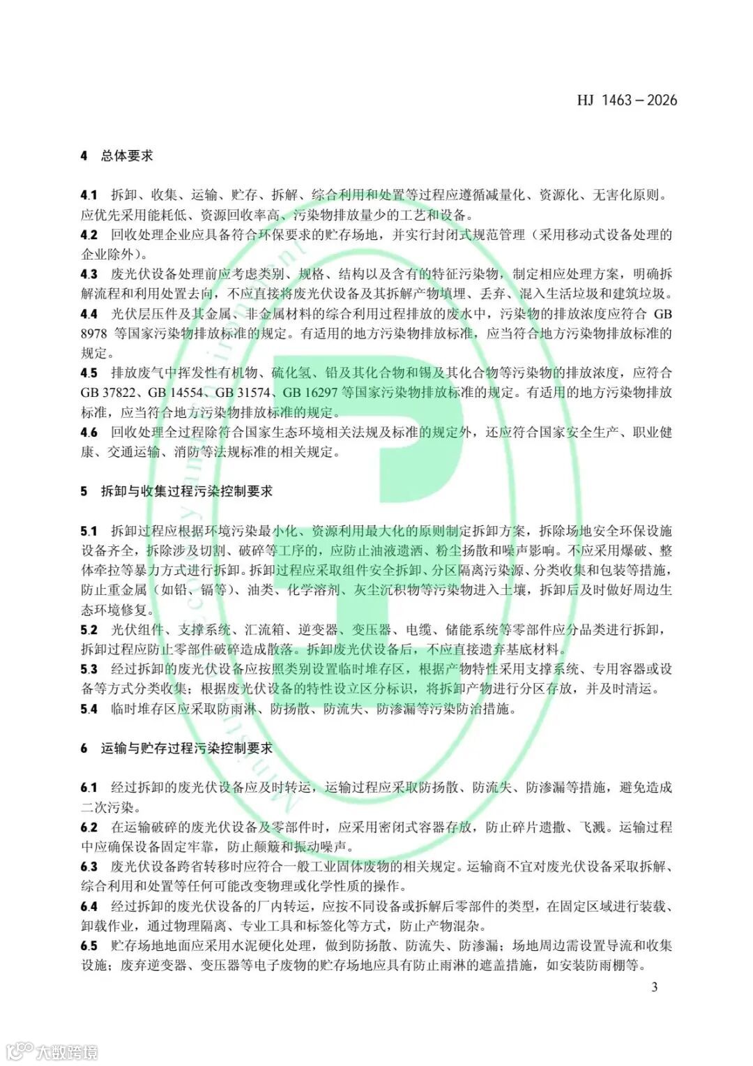 二、《废光伏设备回收处理污染控制技术规范》(HJ 1463-2026)