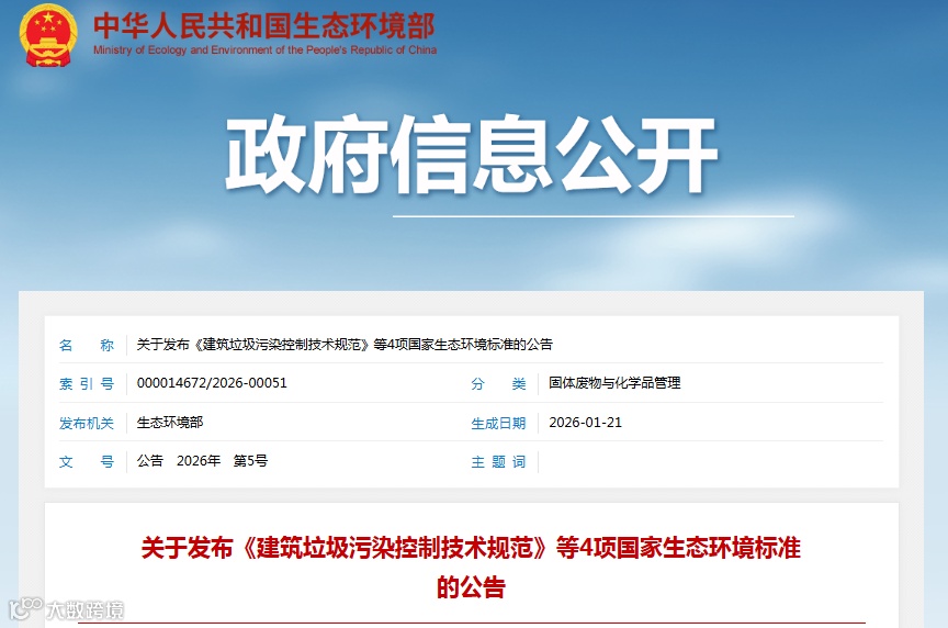 关于发布《建筑垃圾污染控制技术规范》等4项国家生态环境标准的公告