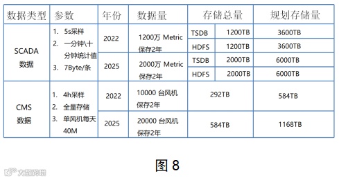 数据量预估方法,设计方案如图8所示,假设入库数量点数是1200万点,入库频率是每五秒一条,每个点占用7个字节的空间。