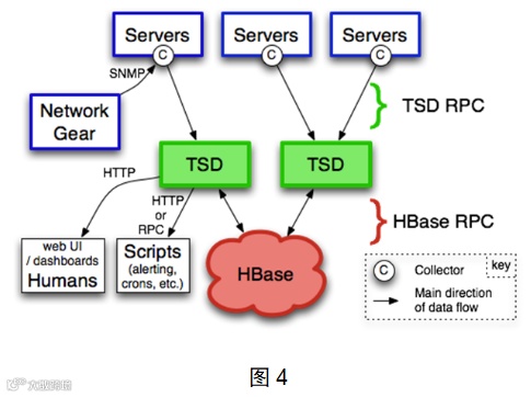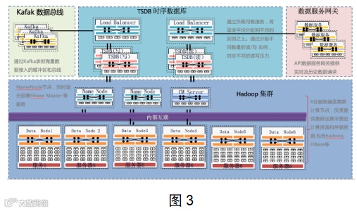时序数据库(TSDB)使用基于Hadoop 底座的openTSDB,一方面考虑到其和Hadoop 数据平台的适应性,另一方面主要是其超强的服务稳定性和经过长久业界考验的历史,架构如图4所示。