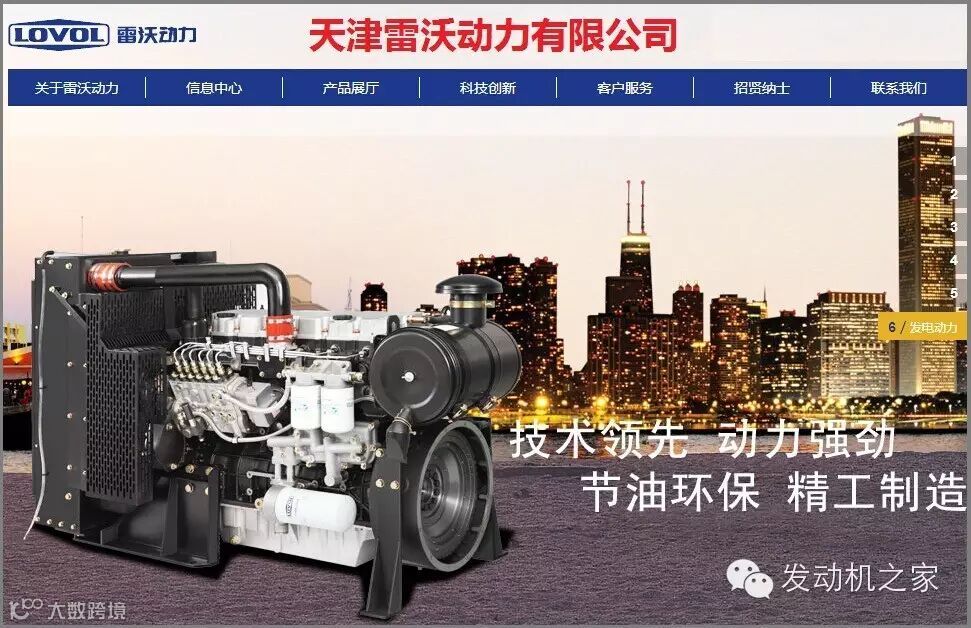 天津雷沃动力有限公司(简称雷沃动力)是一家集研发、制造、销售、服务于一体的现代化柴油发动机企业,位于天津市北辰科技园区。产品广泛应用于汽车、工程机械、发电机组、农业装备、船用辅机等领域,销往欧洲、中东、南美、非洲等百余国家。