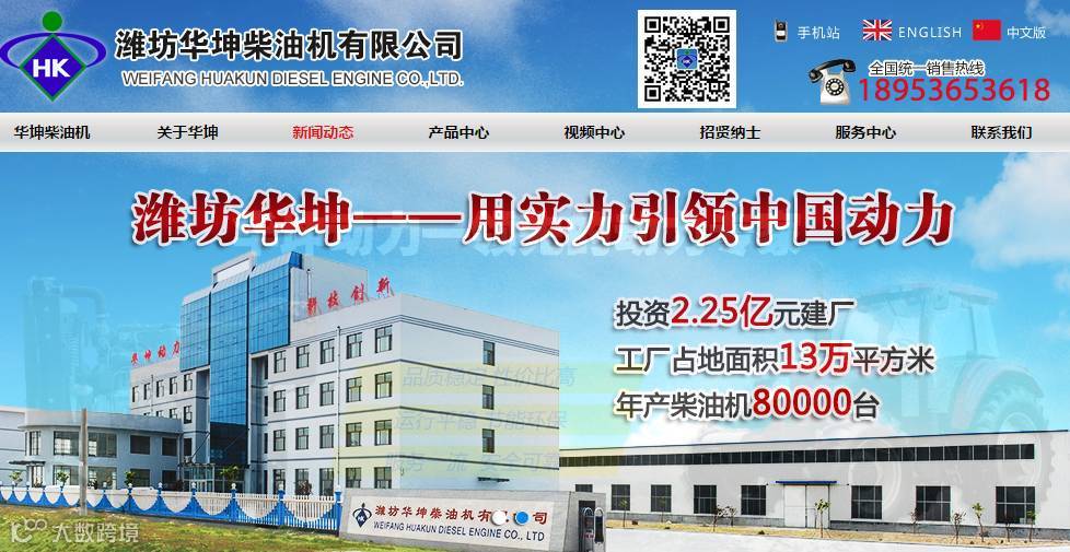潍坊华坤柴油机有限公司成立于2007年,是一家专业生产柴油发动机的现代化股份制企业。2009年投资2.25亿元在潍坊滨海经济技术开发区建设新厂区,2012年整体搬迁并投产。