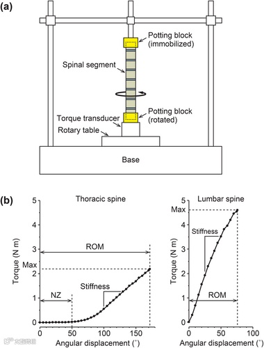 结果明确显示:胸椎存在近50度“中性区”,几乎无阻力即可自由扭转;而腰椎极度僵硬,无中性区,扭转需克服极大阻力。