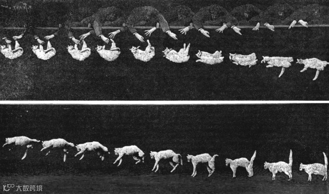 系统研究可追溯至1700年。经典力学指出:无外力矩作用下,自由落体刚体无法自行旋转。但1894年,法国生理学家马雷用高速摄影(12帧/秒)首次证实,猫无需借力即可完成空中翻转。