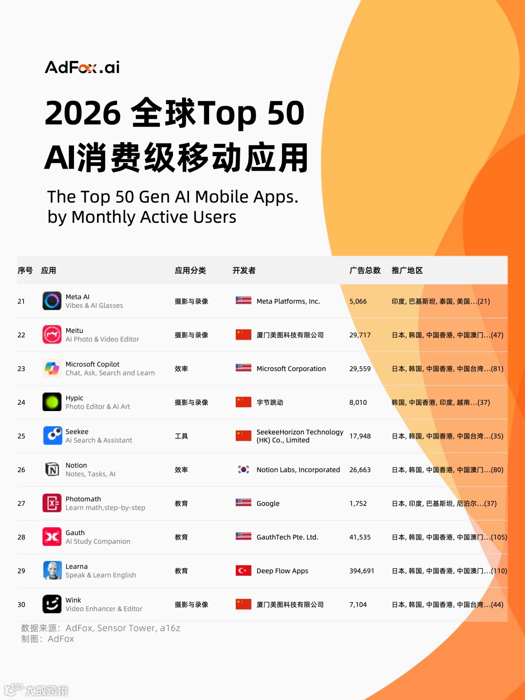 在原始榜单的基础上,我们额外整理了这些产品背后的开发者和推广生态,帮助出海团队或创业者了解:当下 AI 应用的流量入口在哪里,哪些赛道正在快速升温。