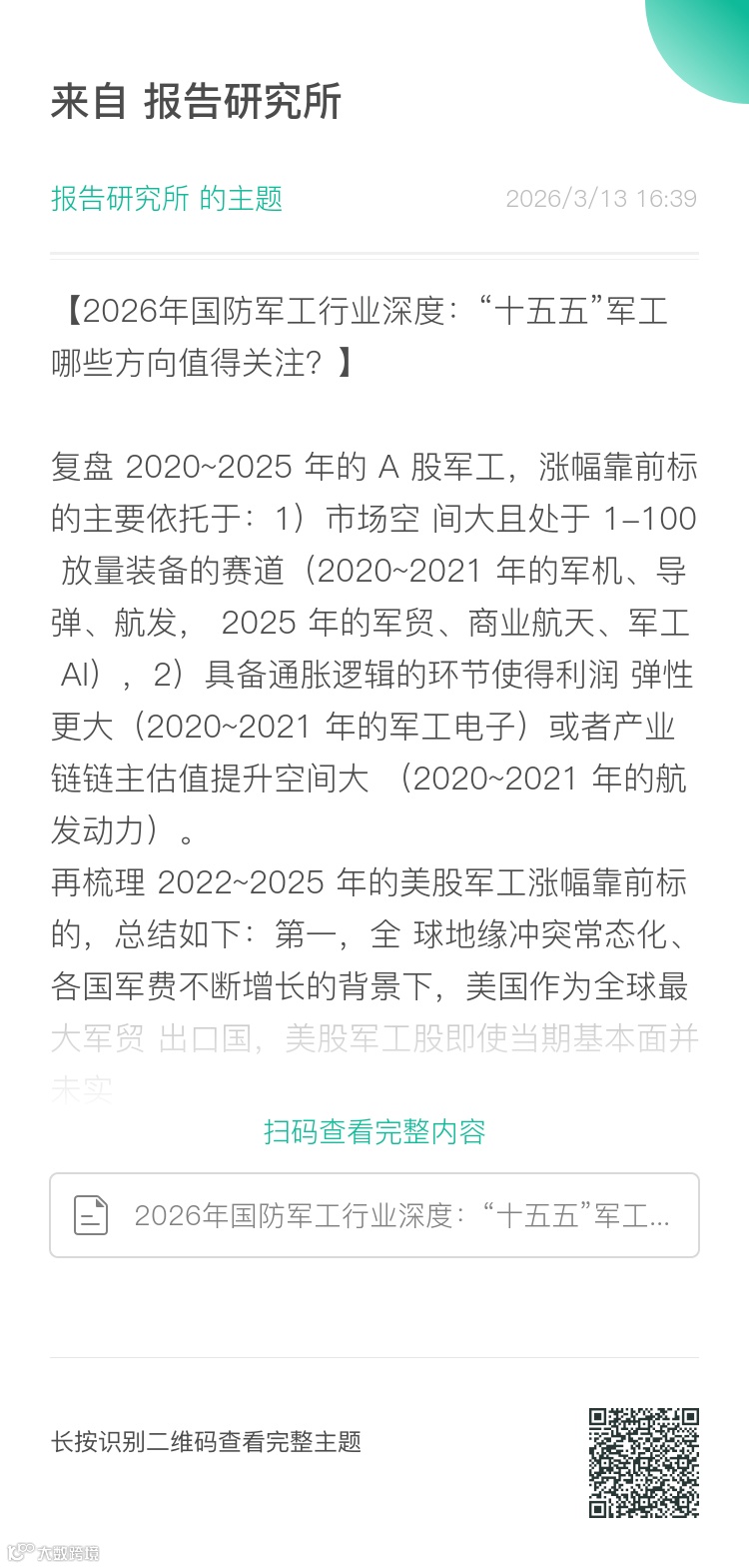 综合来看,A股军工标的阶段性大涨的核心动因包括:一是处于“1–100”放量阶段的高成长赛道(如2020–2021年的军机/导弹/航发,2025年的军贸/商业航天/军工AI);二是具备通胀逻辑或产业链主导地位的环节(如军工电子、航发动力),带来更高利润弹性或估值溢价。