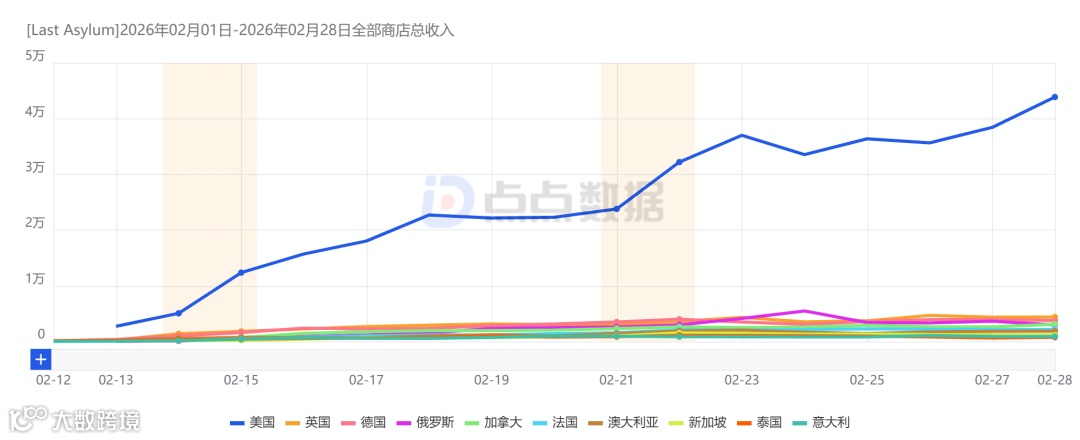 《Last Asylum: Plague》2月收入地区来源趋势(点点数据)