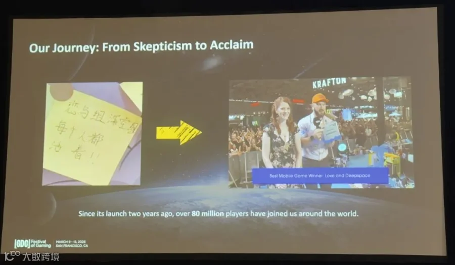 但如果把视线拉近,会发现叠纸真正想回答的,从来不是“乙女游戏能不能做战斗”,也不是“恋爱游戏还能往哪里卷”。 在GDC2026现场,《恋与深空》制作人栗子反复谈到的,其实只有一个词:浪漫。