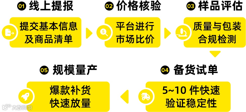 入驻基本要求:持有中国大陆或香港营业执照;店铺年流水≥30万美元;首单备货量为5–10件/SKU。