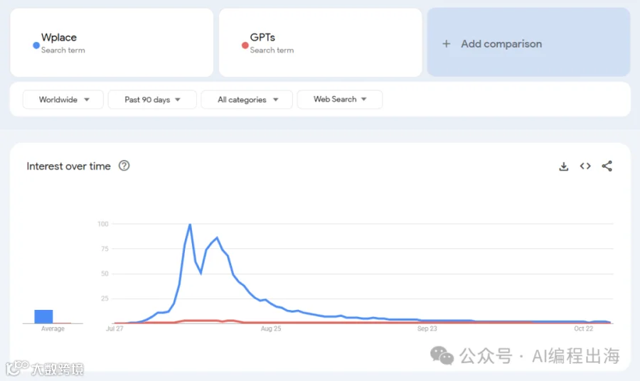 开始做出海网站以来,我有空时都会看看谷歌趋势上的新词。有一天,有一个词的流量暴涨引起我的注意,这就是去年七八月火遍全球的“Wplace”: