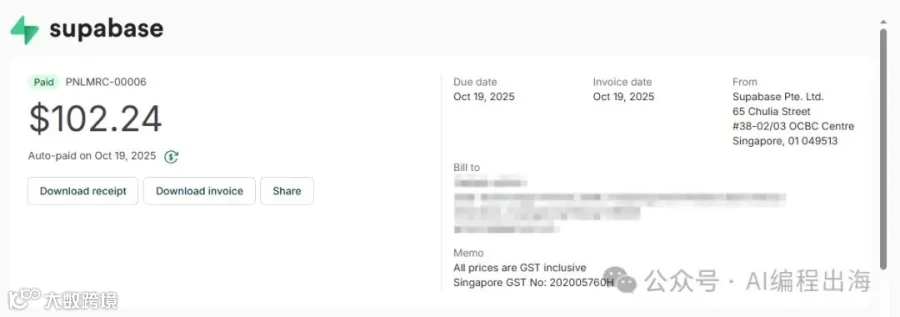 深海圈结束之后,我继续使用NextJS+Vercel+Supabase的架构上线出海网站,前前后后上线了10多个网站。前面提到“NextJS框架结合Supabase数据部署在Vercel平台上”大大降低了新手部署上线一个网站的门槛,然而降低门槛有时候也是有成本的,且不说Vercel每个月20美金的Pro费用,去年10月份的Supabase的账单一出来,我一看傻眼了...