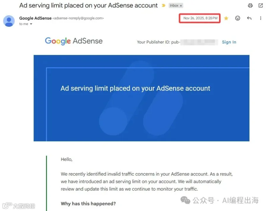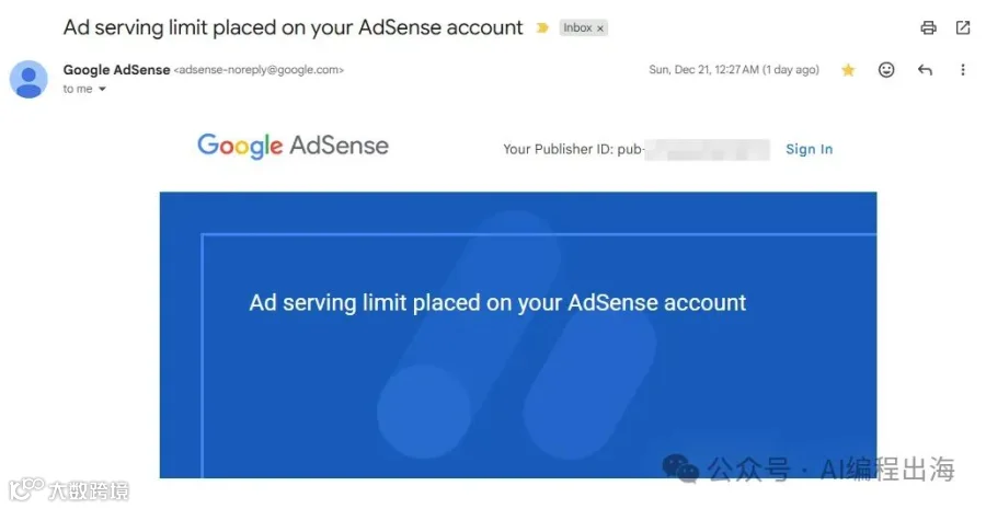 接下来,我的Adsense收入直接进入躺平状态。我于是把Adsense给我发送的前后两封邮件发送给Gemini做分析,按照Gemini的指引做检查和优化,进一步关闭掉每次刷新页面就会弹窗显示的Vignette广告,但是保留侧边栏显示的Side rail广告。然后正式进入长达半个月的限制期。