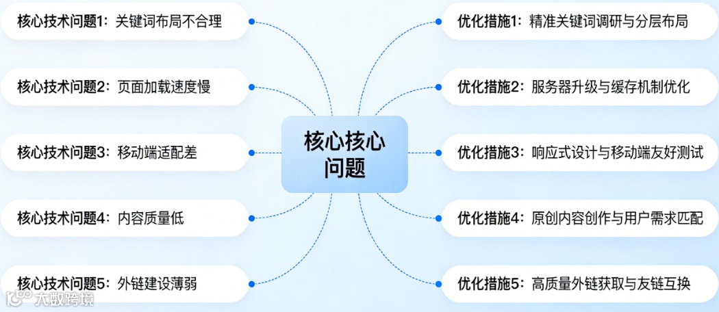 - 页面间缺乏合理内链关联,权重无法有效传递至关键页面;