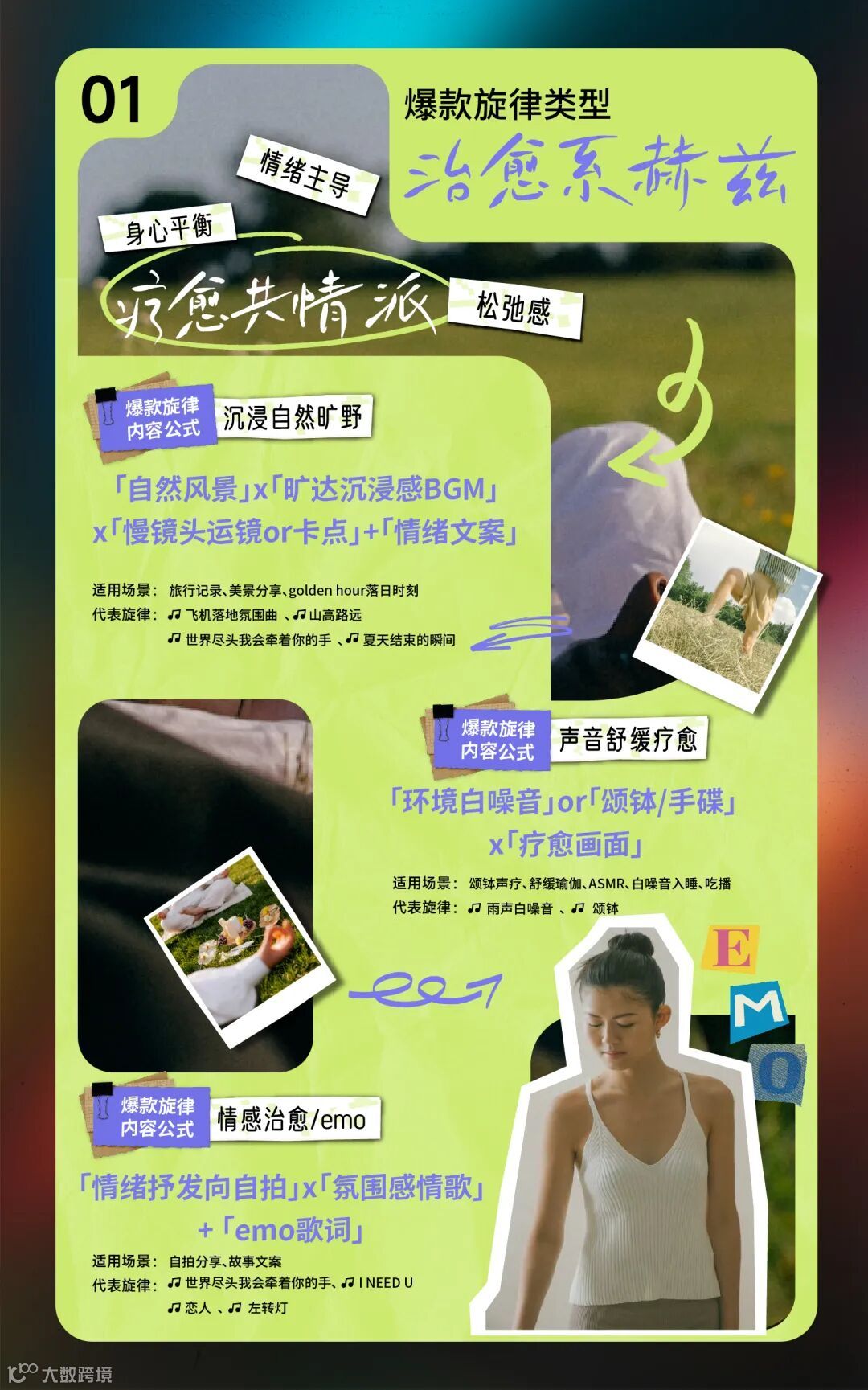 这些旋律普遍具备三大共性:旋律简洁且富有记忆点;歌词与曲风精准呼应用户当下的情绪状态;氛围适配多元内容主题与传播场景。