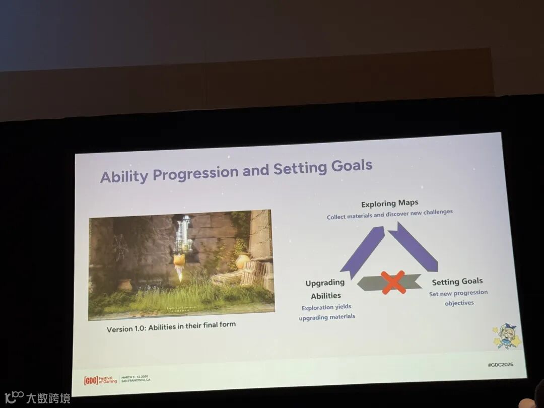 但随之而来的问题是:在整个游戏历程中,玩家对于这些能力是没有养成追求的。所以也无法建立:探索地图→建立目标→提升能力→更好地探索这样的正向体验循环。