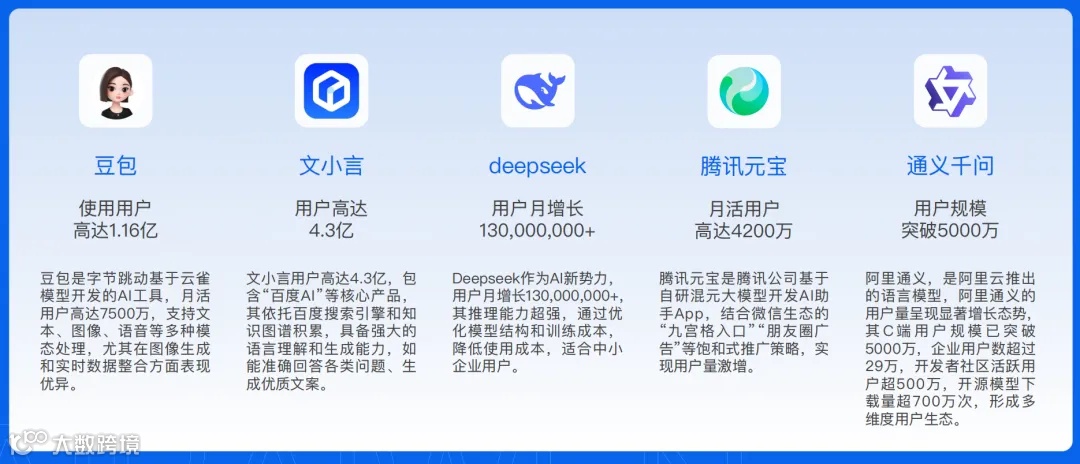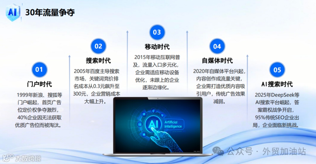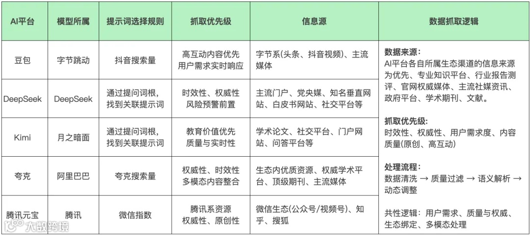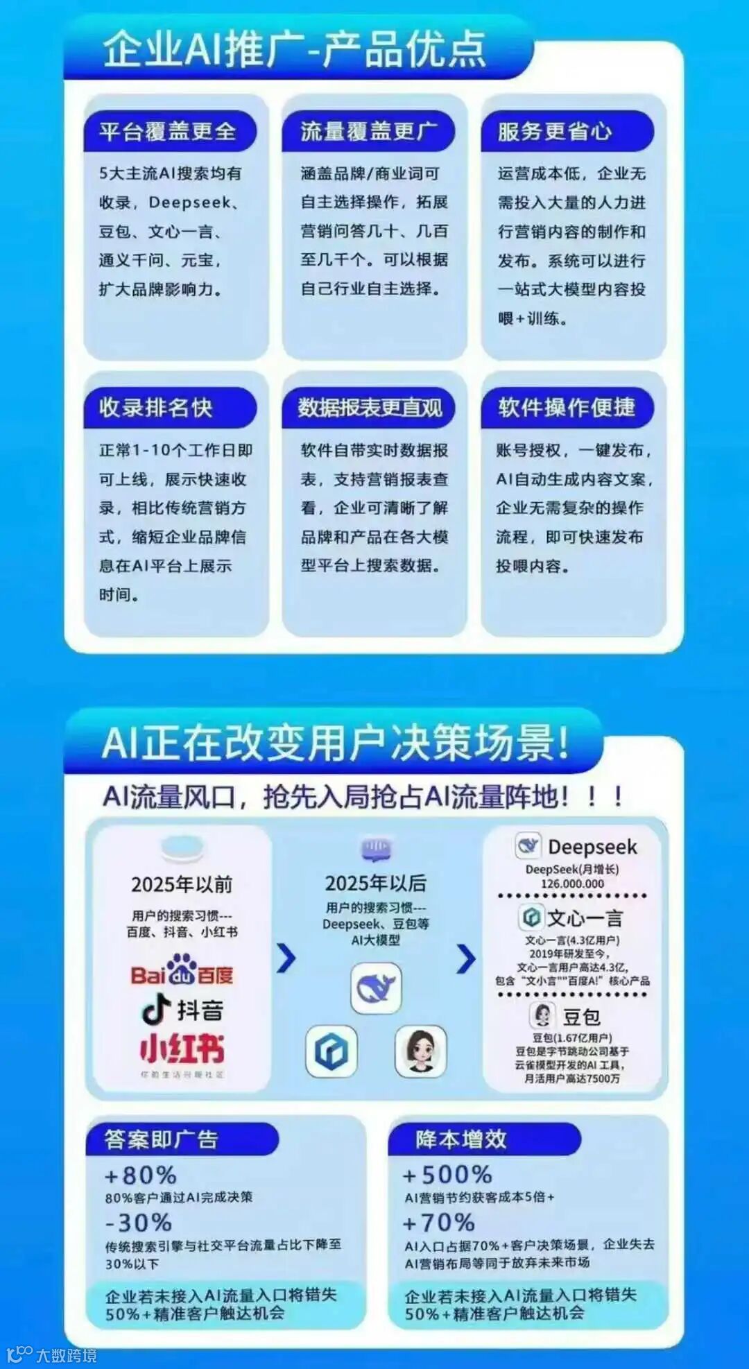 | 流量入口 | Google、百度等搜索引擎 | ChatGPT、DeepSeek、豆包、腾讯元宝、文小言、通义千问、Kimi等AI工具 |