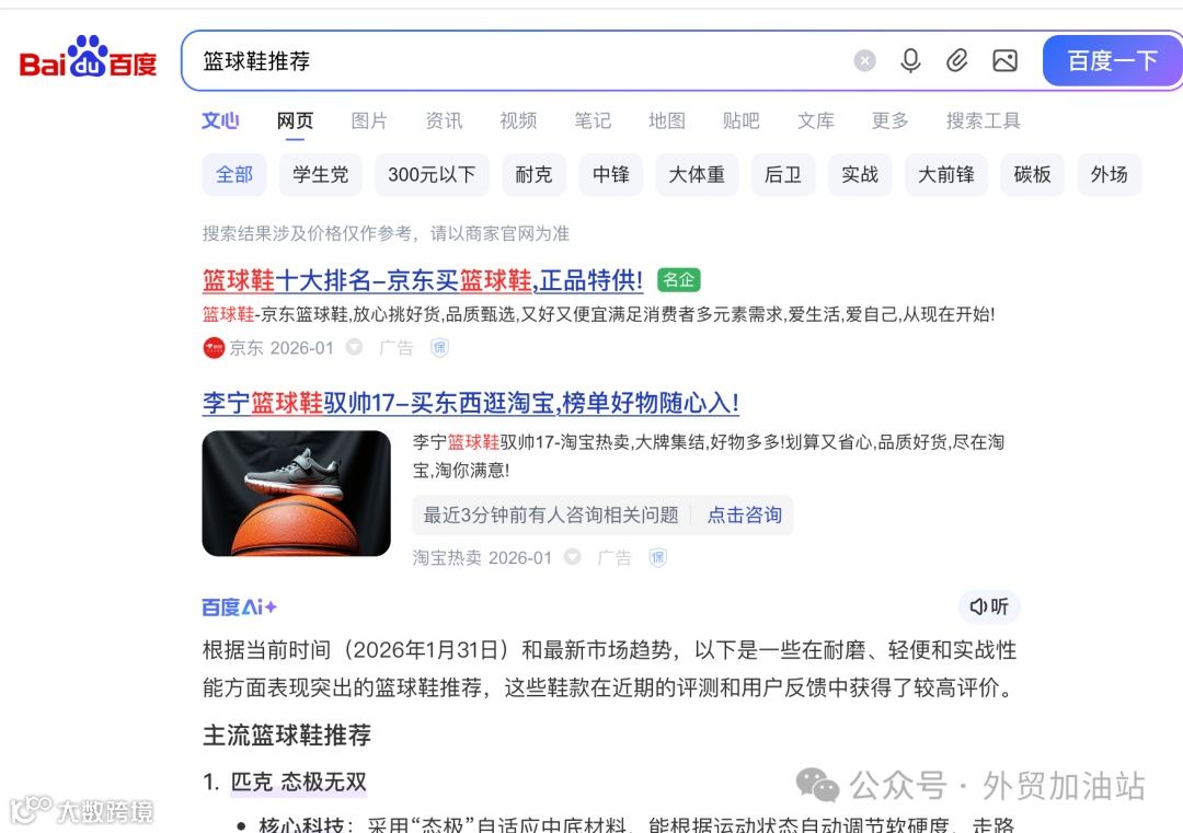 SEO逻辑是:通过关键词优化与外链建设,使网页在搜索引擎结果中排名靠前;用户搜索“篮球鞋推荐”,官网排第一并被点击即达成目标 [9] 。