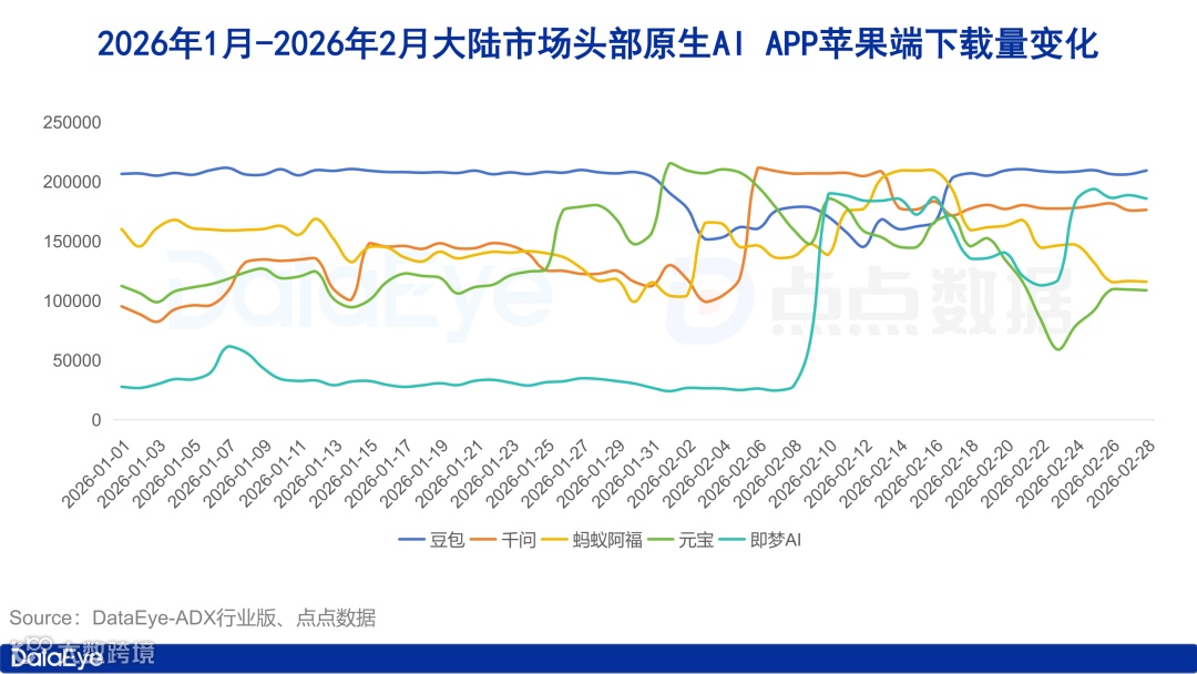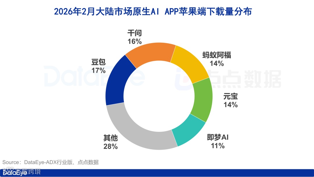 点点数据显示,2026年2月,大陆市场原生AI APP苹果端