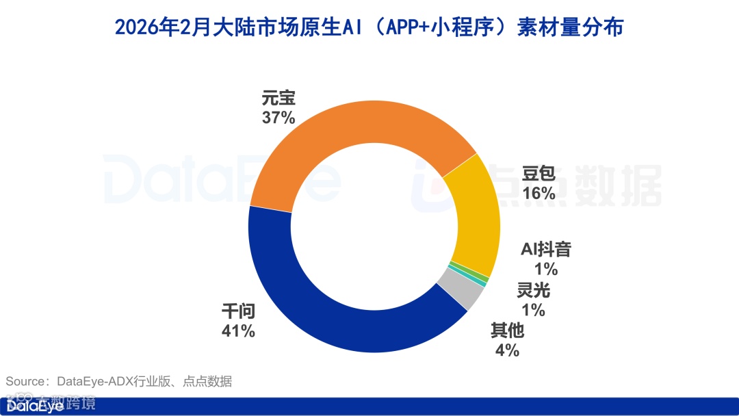 ADX行业版数据显示,2026年2月,大陆市场原生AI产品投放素材量达