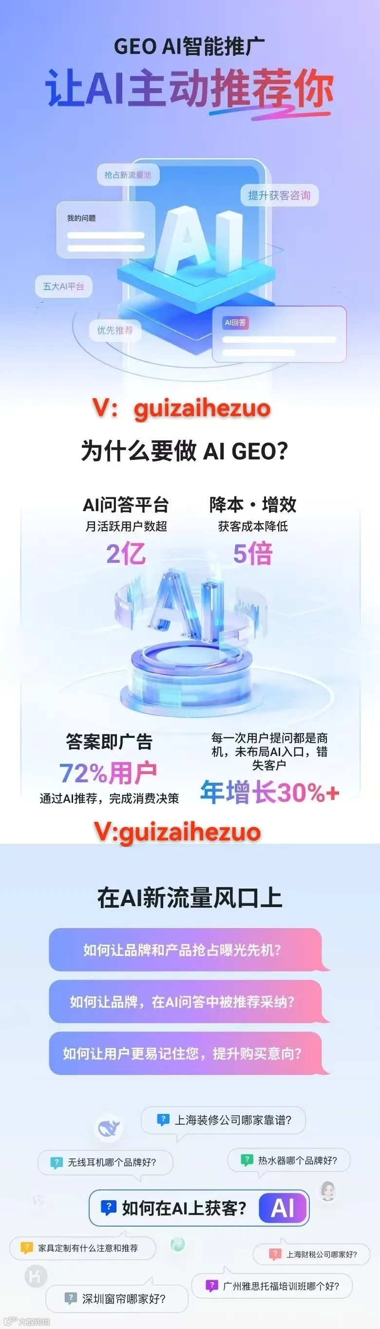 GEO(Generative Engine Optimization,生成式引擎优化)是面向 ChatGPT、DeepSeek、豆包、通义千问等 AI 工具的内容优化技术,通过语义强化、结构化表达与权威背书,使品牌信息被 AI 模型精准识别、优先引用并可信推荐,从而抢占“搜索即答案”的新流量入口