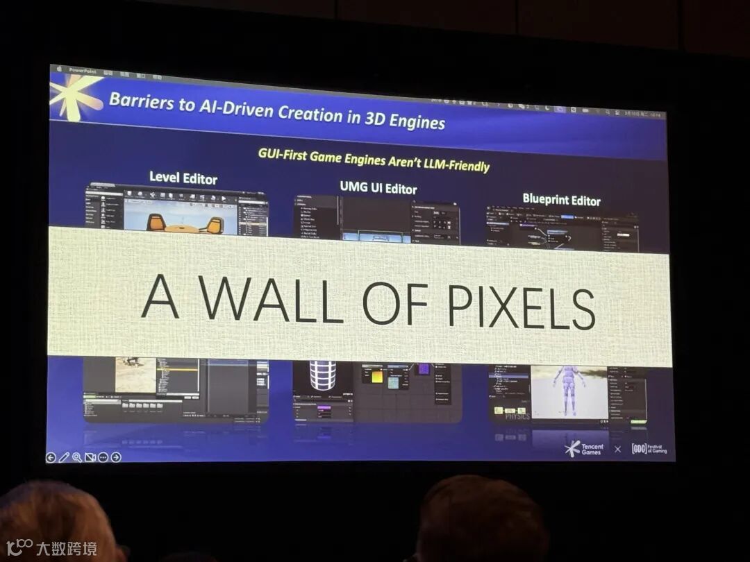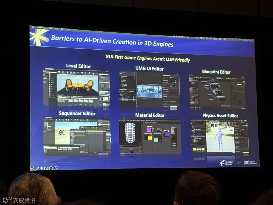 因为大多数引擎工具都是GUI优先(GUI-first)的。它们拥有对人类极其友好的图形界面(如蓝图节点、连线),但这些界面并非为AI设计。AI更擅长处理API或对Token友好的代码结构。