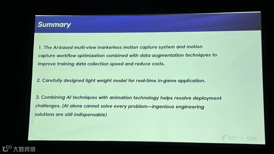 在本次分享中,演讲者详细拆解了团队如何通过无标记动捕、轻量级神经网络(仅6MB)以及异步引擎部署,在头部商业游戏中跑通了这套AI动作生成管线。