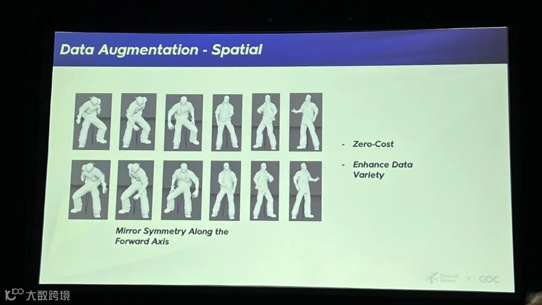在数据增强方面,我们首先做空间增强,比如沿着前方轴线做镜像对称。这是零成本的,并且能极大增加数据的多样性。