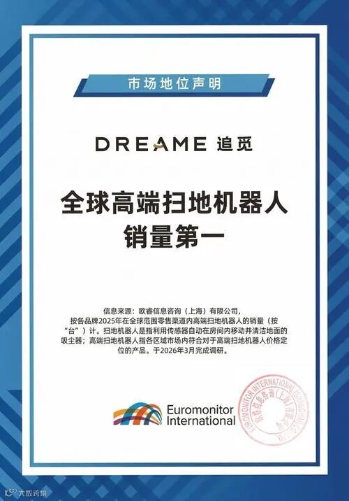 就在不久前,欧睿国际的一纸认证为这份野心写下了注脚——“全球高端扫地机器人销量第一”。