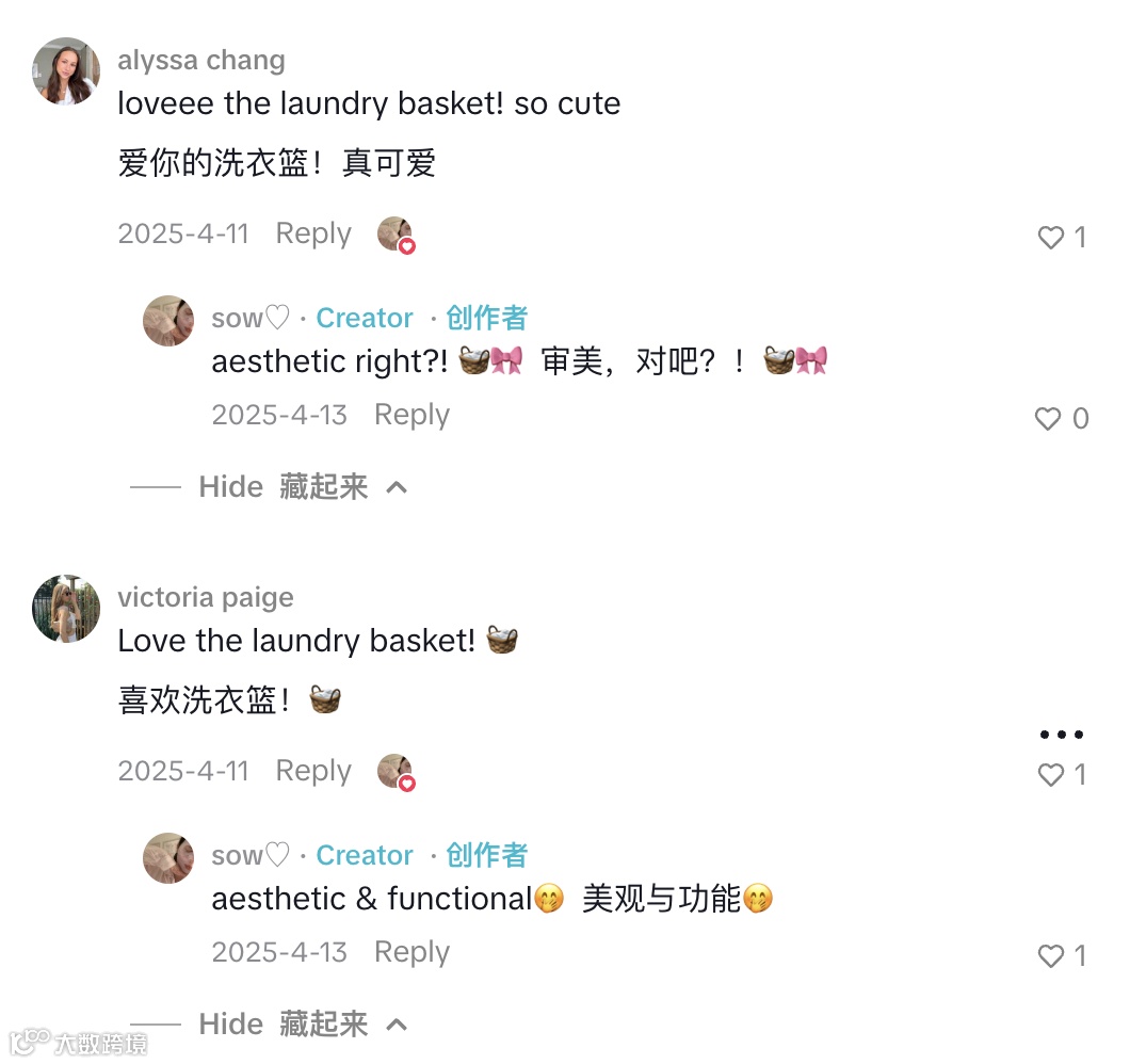 同时,该视频评评论区底下不少用户主动询问脏衣篮链接,互动活跃。