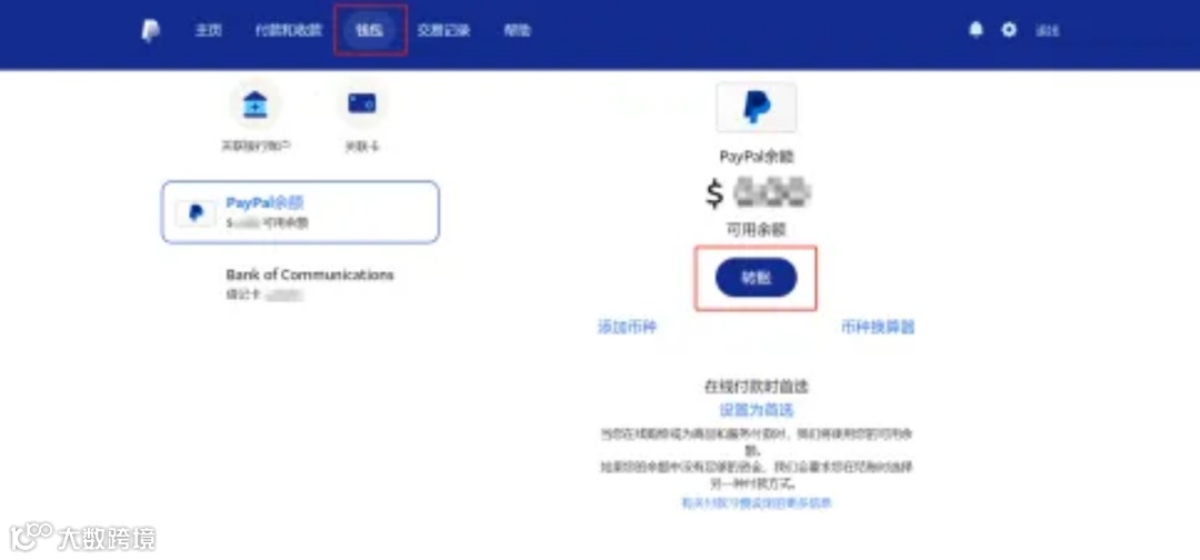 PayPal 提现: 在首页点击“转账”,选择刚刚绑定的美国银行账户,输入金额,点下一步完成。