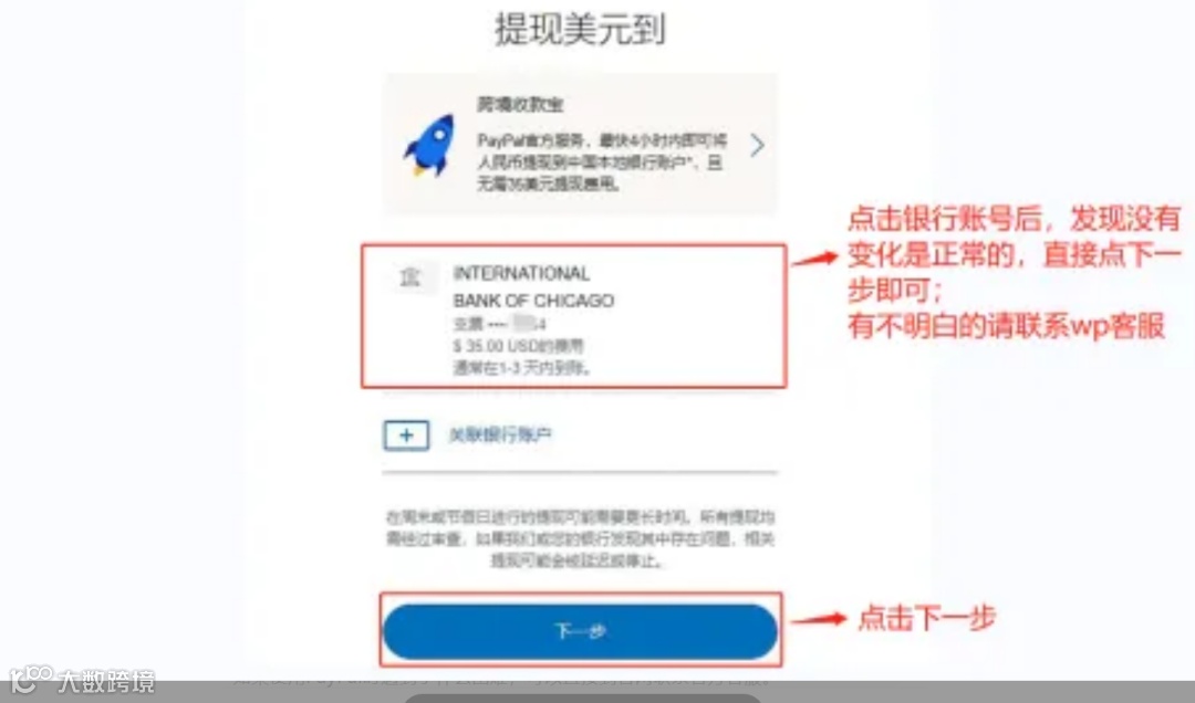 手续费: PayPal 提现到美国银行账户通常有固定的手续费(35美金1笔),建议积攒到一定金额后一次性提现。