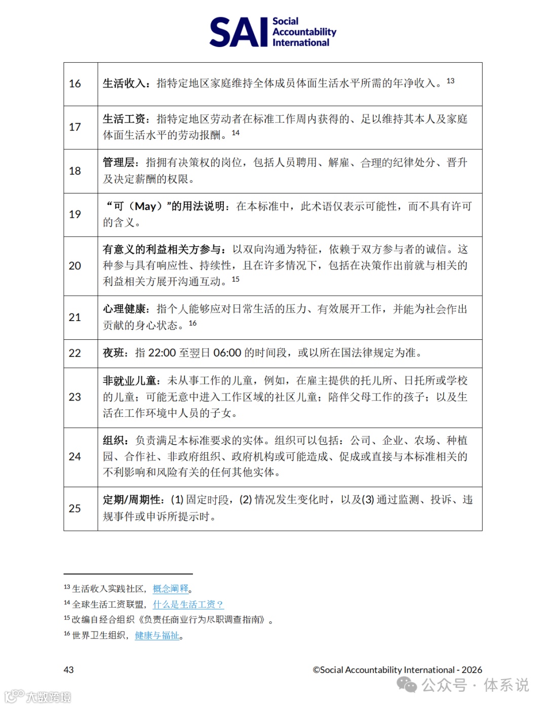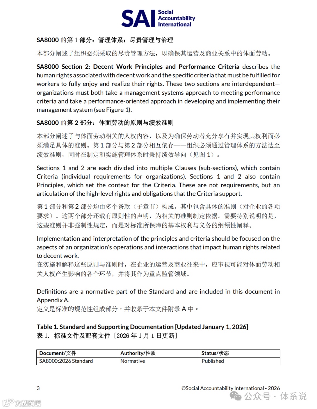 SA8000:2026版标准已于2026年1月1日正式发布。该标准内容源自SAI(Social Accountability International)国际社会责任认证中心官网,权威可靠 [2] 。