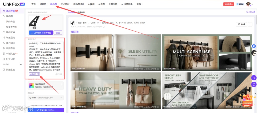 二、Linkfox等AI作图工具:运营友好型一键套图方案