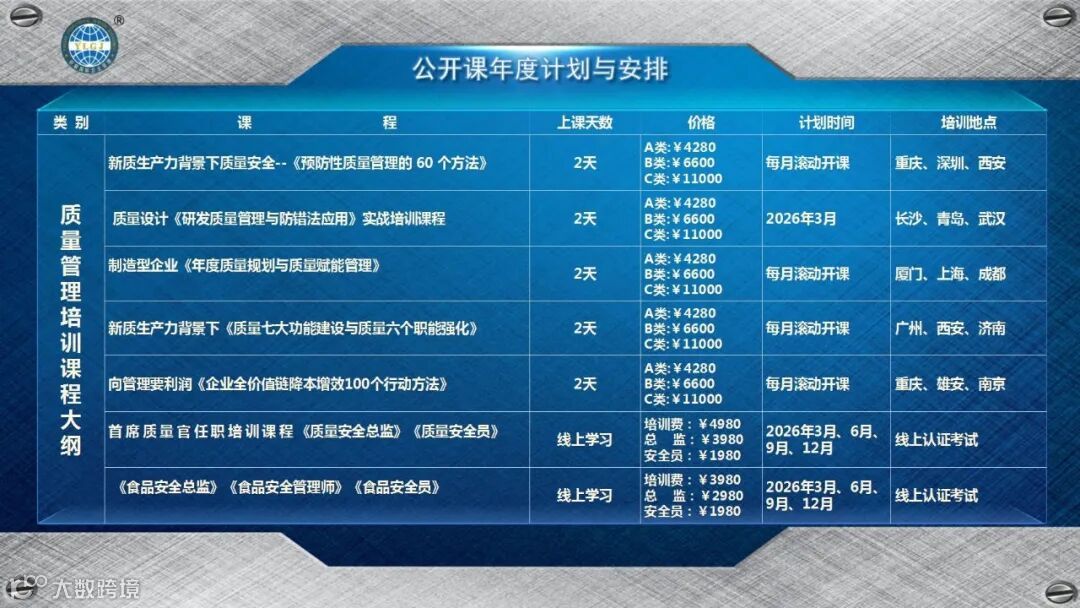 【研联国际】2026年公开课年度计划正式开起,有做公开课,系统化培训,内训,微咨询,项目咨询的企业看过来,所有的课程也可根据企业需求量身定制。