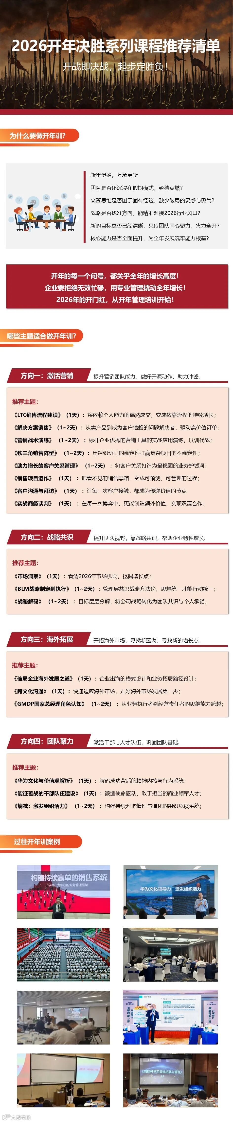 2026年的竞争序幕已经拉开。有的团队还在慢慢“热机”,有的团队已经校准方向、加满油、全力冲刺。开年培训,正是快速提升组织能力、统一思想、激活团队的最佳时机。
