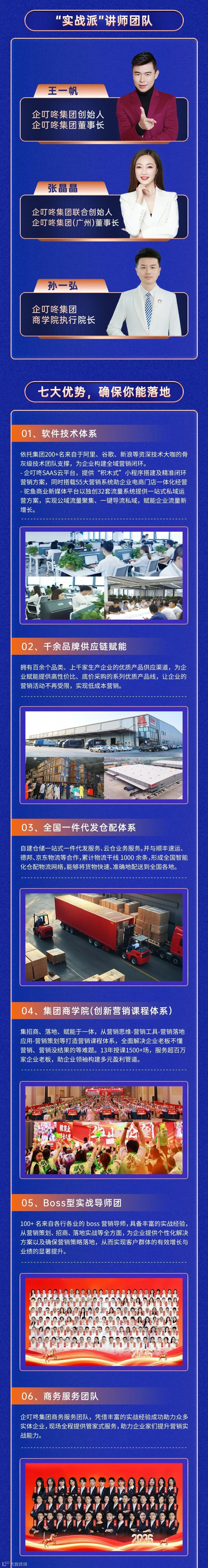 企叮咚集团华北导师团总团长-王潇毅老师:围绕招商核心能力,从产品线设计到话术演练,手把手传授实战技巧,助力学员掌握招商主动权,干货满满且易落地。