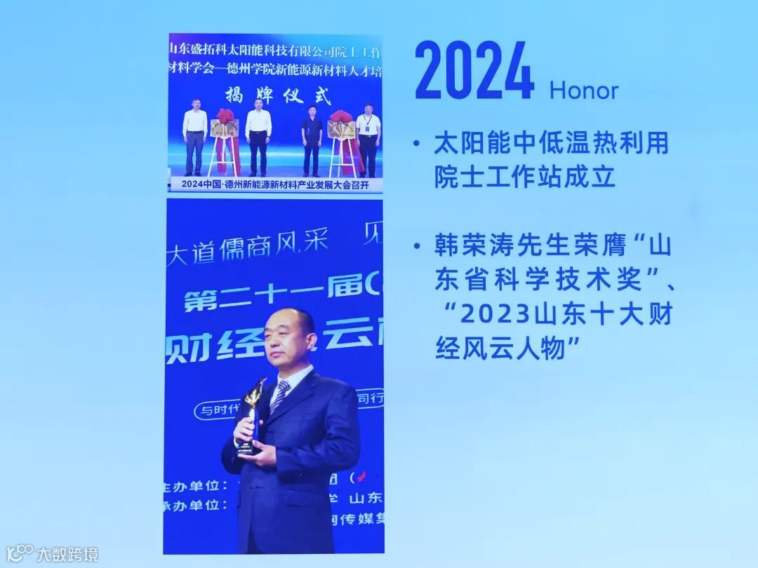 面向未来,韩荣涛表示,盛拓科未来会将重点深耕“三热一储”领域,即建筑供暖、工业蒸汽、农业烘干以及跨季节储能技术。跨季节储能是一个非常有前景的方向。比如在西部地区将夏季富余的太阳能热量储存起来,用于冬季供暖,整个系统的能源利用率提升了70%,这对于解决可再生能源的季节性波动问题意义重大。