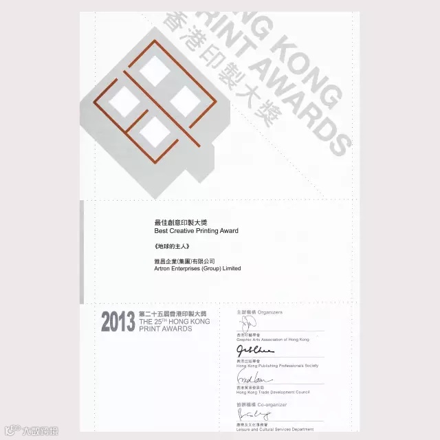 2013年,《地球的主人》荣获第二十五届香港印制大奖最佳创意印制大奖