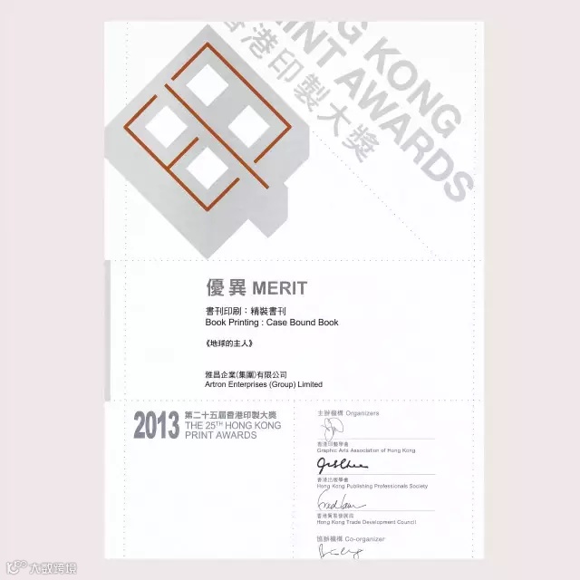 2013年,《地球的主人》荣获第二十五届香港印制大奖优异奖