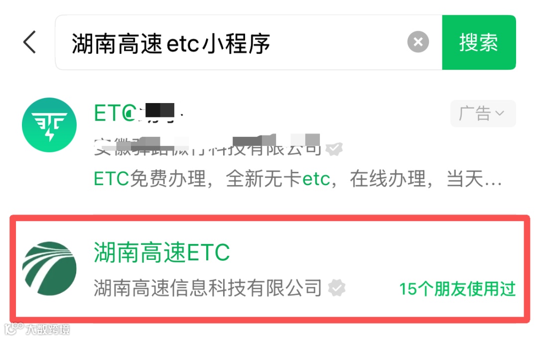 打开微信 → 顶部搜索框选择“小程序” → 搜索 “湖南高速ETC” → 认准官方号