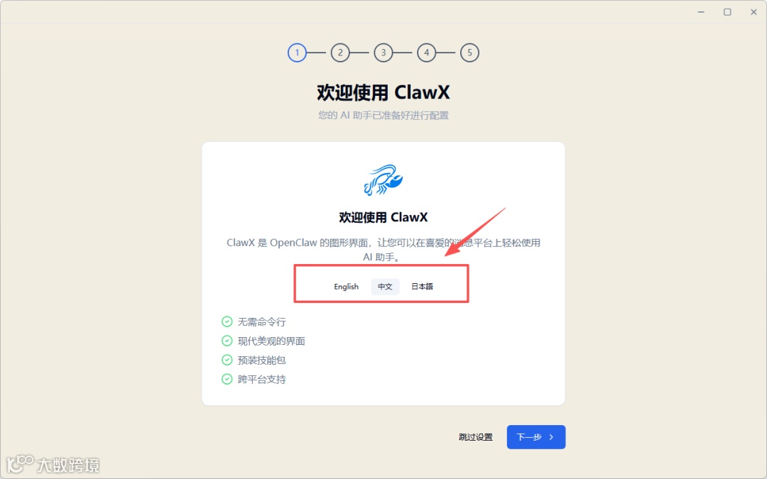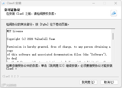 拿到咱们文末的安装包后,双击运行,首先映入眼帘的就是极简的 ClawX 安装界面。