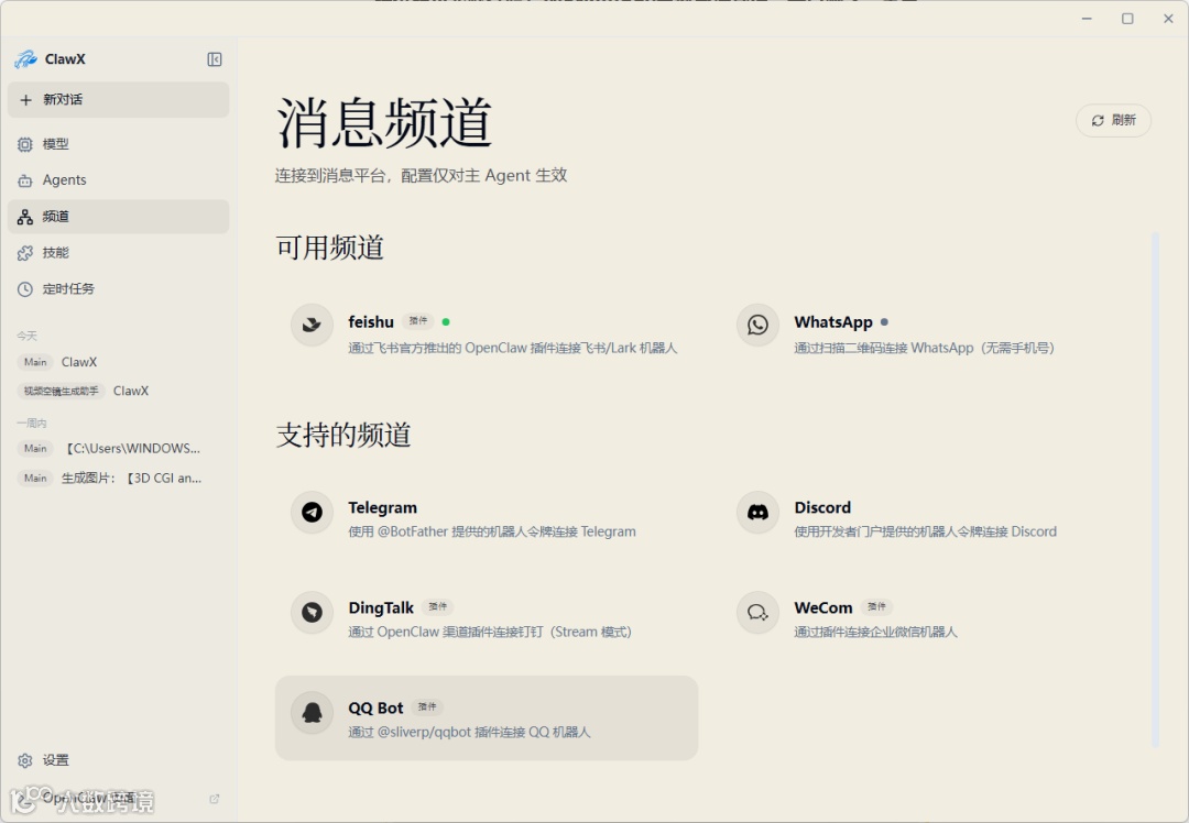 结合咱们上周玩 QClaw 的经验,这次上手 ClawX 可以说是毫无违和感,体验上也很不错。