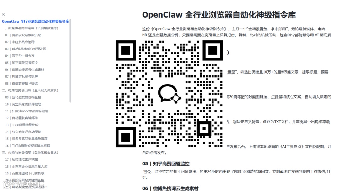 🎁 《OpenClaw 全行业浏览器自动化神级指令库》 无论你是什么岗位,都能直接抄作业:
