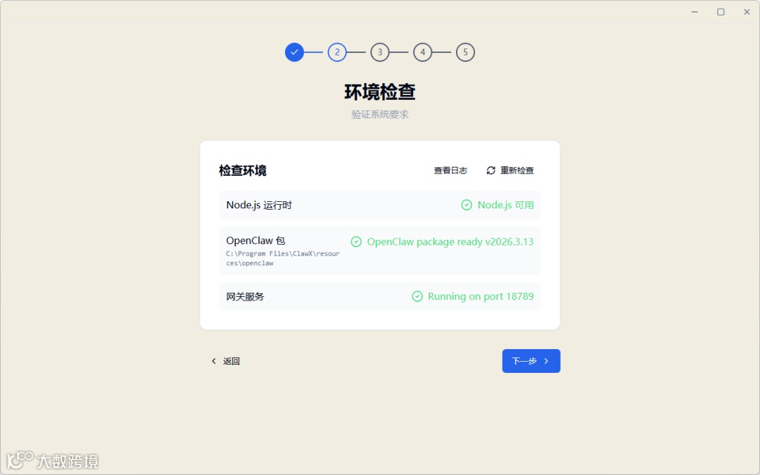 ClawX会自己检查依赖是否安装,没有安装的话,会自己拉取安装,我们只需无脑下一步即可。