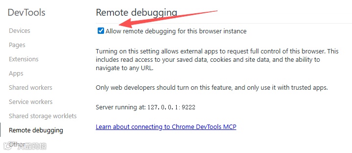 打开网址:chrome://inspect/#remote-debugging。
