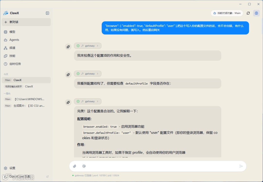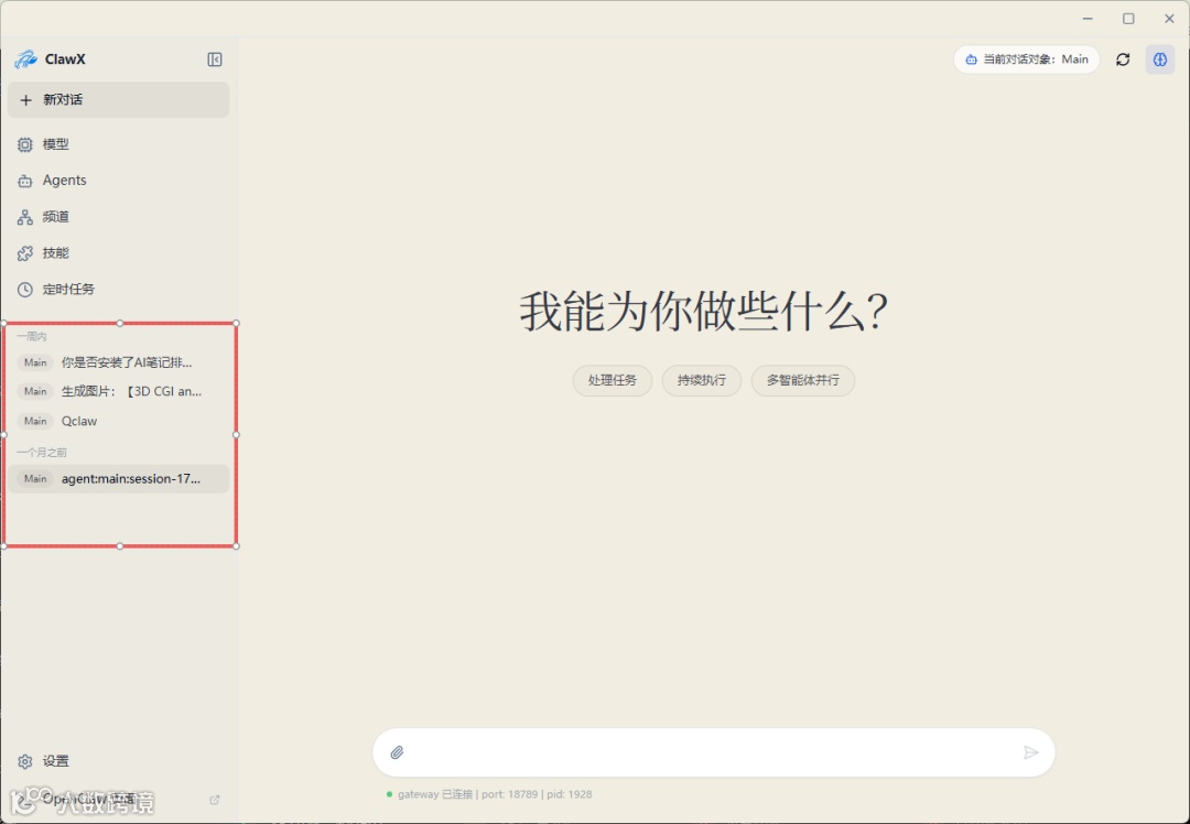 与QClaw 一样,ClawX 同样能够完美继承原本 OpenClaw 的记忆和对话历史。
