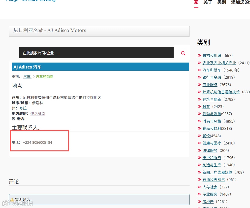 尼日利亚本土黄页网站,收录了大概10万家的尼日利亚本土企业,我们可以直接按照类别去查看开发,可以看到客户的电话。
